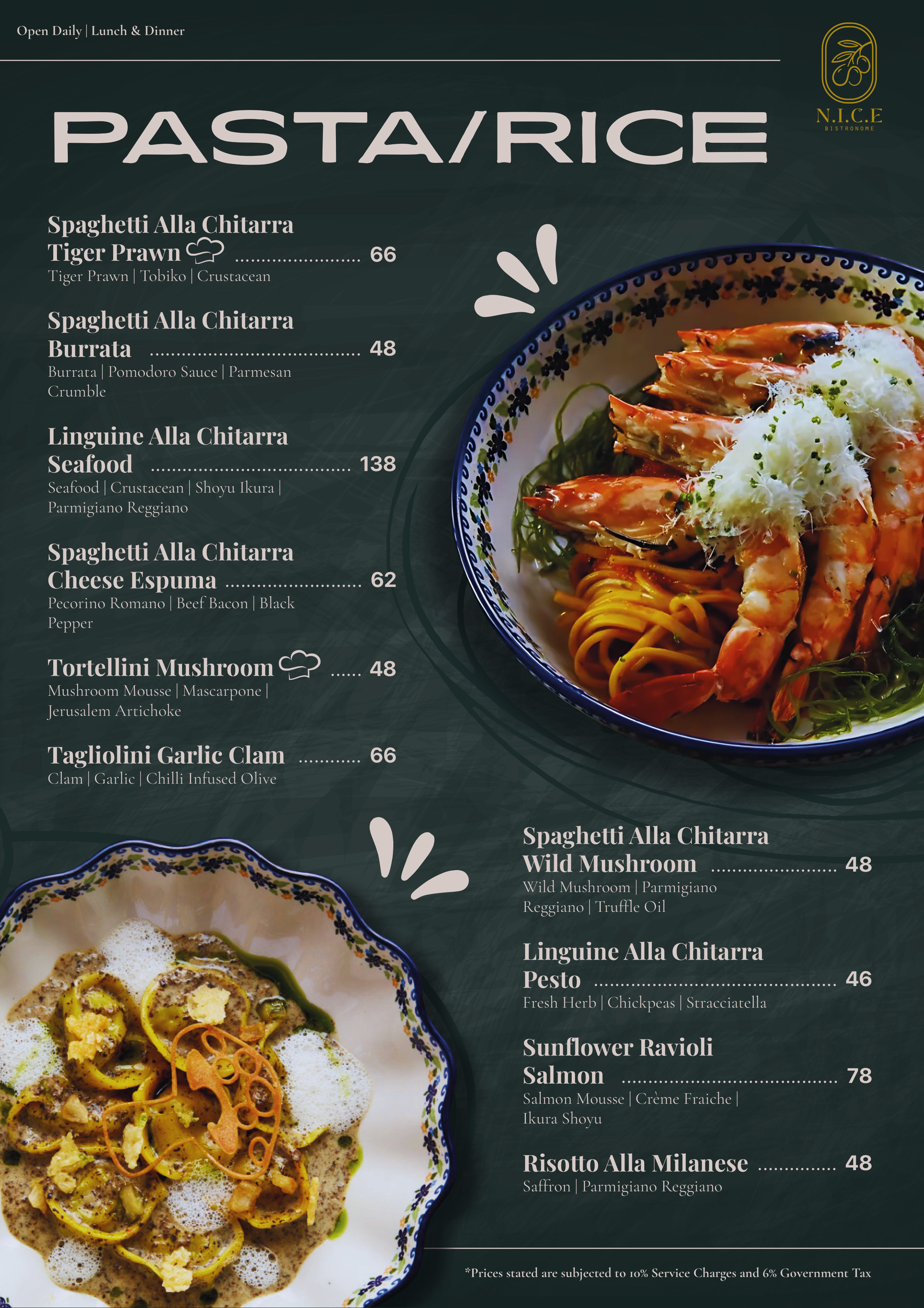 Choice of 3 types of pasta ( Linguine | Chitarra | Tagliolini )