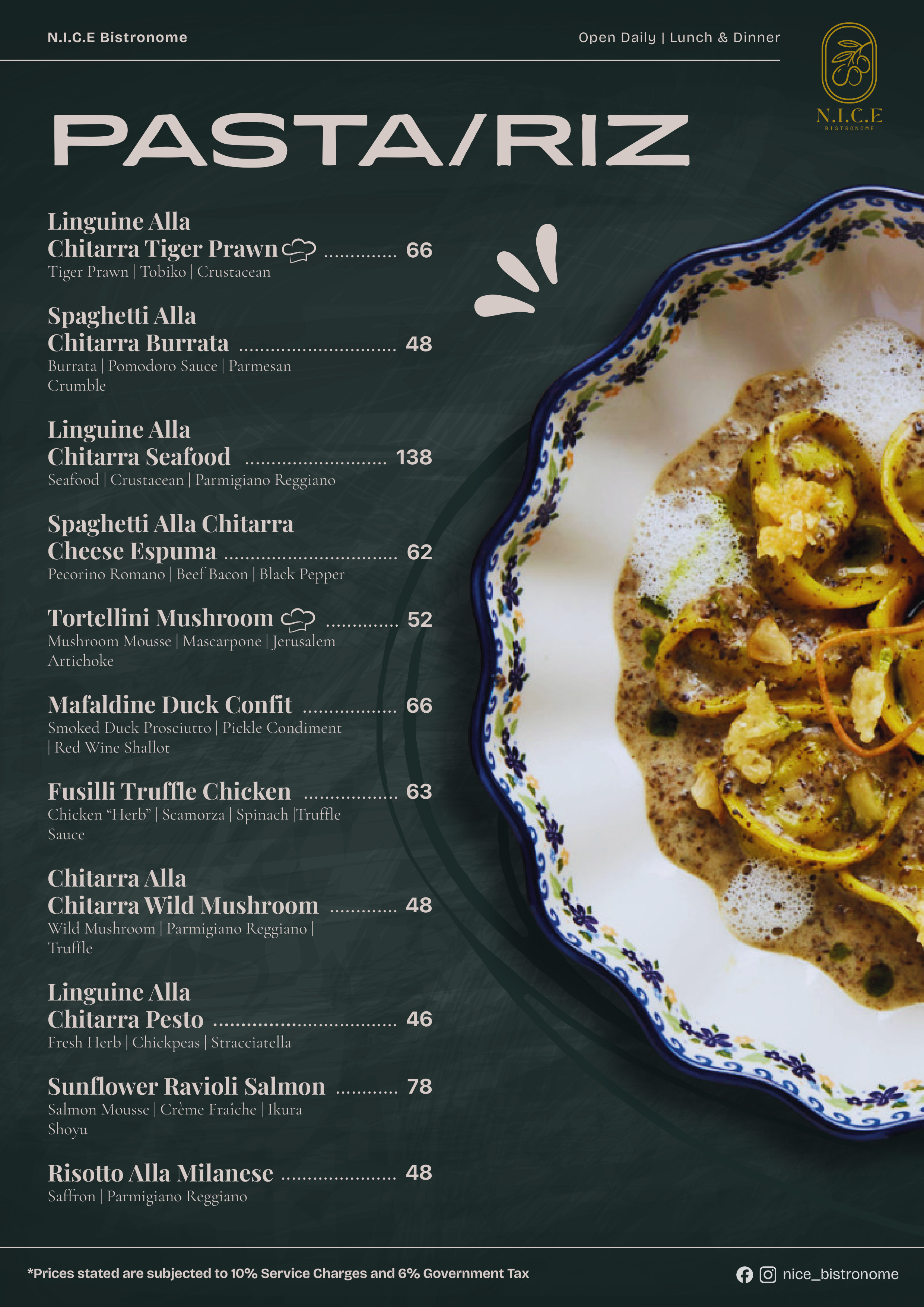 N.I.C.E TORTELLINI | CHICKEN | SCAMORZA | CAPER | OLIVE